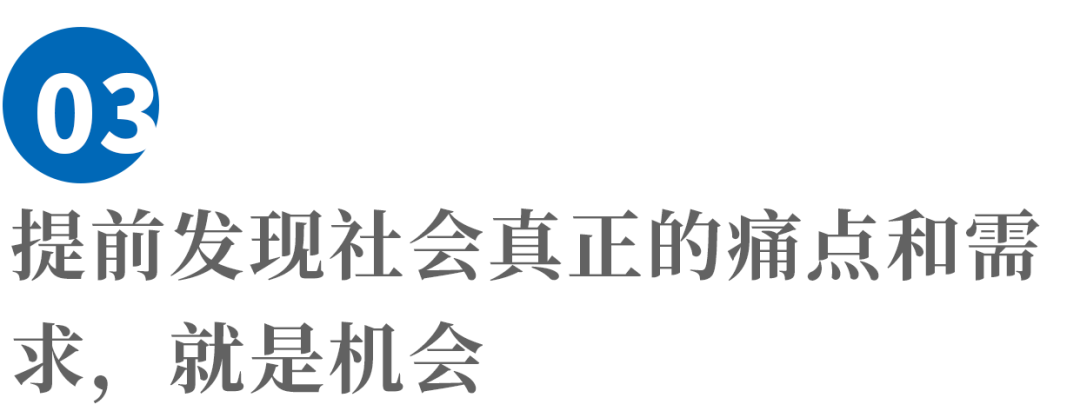 我们是一家社会服务型的公司,因此能够提前发现社会真正的痛点和需求,也就是我们自己的生意机会。