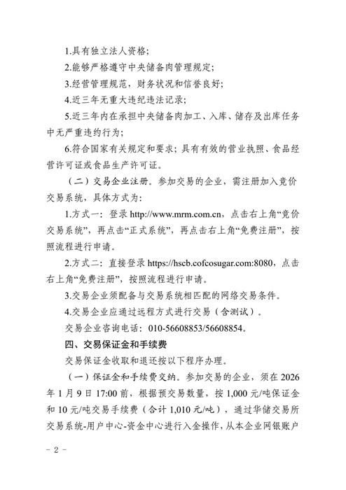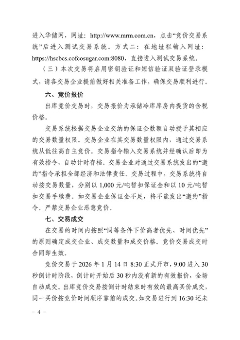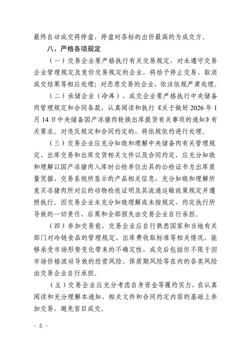 华商储备中心 :关于2026年1月14日中央储备冻猪肉轮换出库竞价交易有关事项的通知