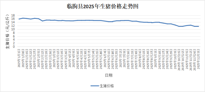 据临朐县第48周(12月3日)价格监测数据,进入12月份以后,生猪价格继续保持低位,目前价格11.7元/公斤,比上月下降3.15%,比去年同期下降28.22%。生猪价格从6月底开始震荡下降,至10月中旬跌至最低价格11.6元/公斤,之后开始小幅反弹,但反弹时间持续很短,至11月中旬又出现小幅下滑。当前生猪价格涨势不及预期,养殖场户持续亏损。目前猪粮比价4.92:1,自繁自养模式养殖场户头均亏损近100元,外购仔猪育肥模式养殖场户头均亏损近200元。