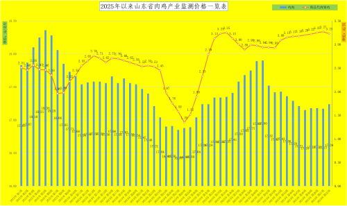 肉雏鸡价格高位回落。本周,我省肉雏鸡均价为3.23元/羽,同比升高13.33%,环比降低1.22%。其中蓬莱市和青州市达到本周最高价,为4.10元/羽;最低区域价格在莘县,为0.80元/羽(817雏鸡)。本周最后一批毛鸡补栏进入尾声,养殖户补栏意向较低,需求转淡,肉雏鸡价格微降。后市,1月上旬孵化场多处于停孵期、暂停出苗,养殖户规避春节假期出栏毛鸡,多暂停补栏,鸡苗市场几无成交,苗价呈现震荡态势。1月中旬,孵化企业陆续恢复出苗,市场苗量不多,且多为定孵计划,但由于毛鸡价格有下跌风险,养殖户或议价,鸡苗成交价格或不及停苗前价格。