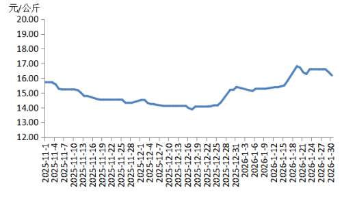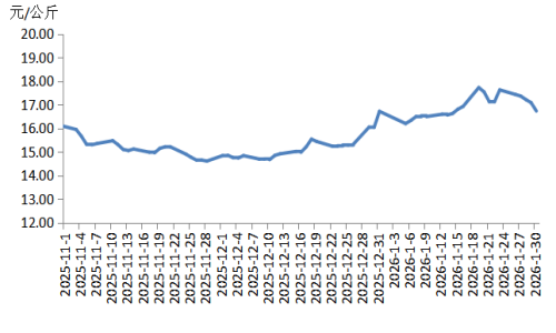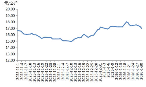 本周华中地区猪肉价格环比下跌。周初,规模养殖场减少生猪出栏量,散养户抗价惜售,屠宰企业收购生猪数量减少,猪肉供应跟随减少,而消费暂无明显增加,价格以稳为主。周中、后期,散养户和规模养殖场增加生猪出栏量,屠宰企业收购顺畅,猪肉供应增加;春节备货需求暂未大量释放,猪肉消费增量有限,价格下跌。