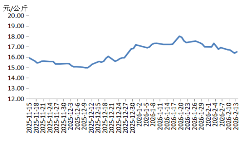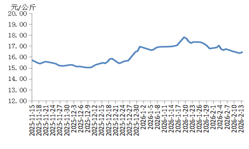 2026年第7周(即2026年2月9日-2月13日,以下简称本周),16省(直辖市)瘦肉型白条猪肉出厂价格总指数的周平均值为每公斤16.43元,环比下跌2.2%,同比下跌15.1%,较上周跌幅收窄4.6个百分点。