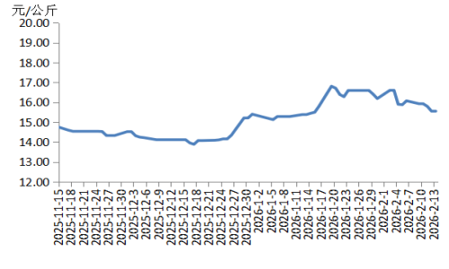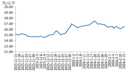 本周华北地区猪肉价格环比小幅下跌。规模养殖场积极出栏,散养户将前期压栏猪源亦集中释放,屠宰企业收购顺畅,猪肉供应明显增加。本周正处于春节前集中备货期,终端需求好转,但需求增幅小于供应增幅,猪肉价格小幅下跌。