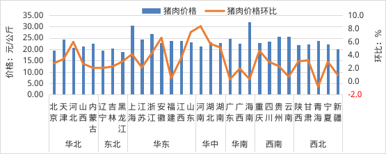 各区域生猪价格及环比增减情况图