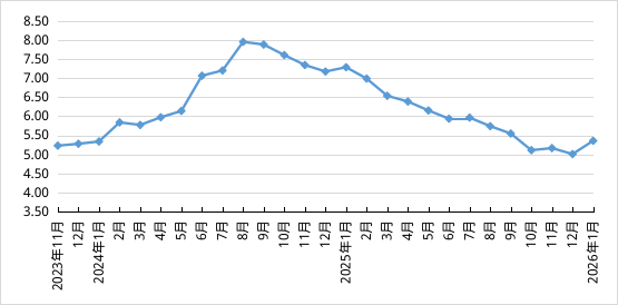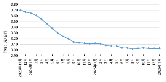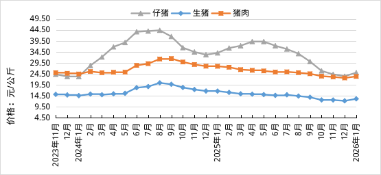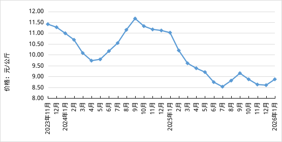 据对全国500个县集贸市场和采集点的监测,2026年1月份,生猪产品、鸡蛋、商品代蛋雏鸡、鸡肉、肉牛、肉羊、玉米、豆粕、肉鸡配合饲料、蛋鸡配合饲料价格环比上涨,商品代肉雏鸡价格环比下降,生鲜乳、育肥猪配合饲料价格环比持平。按集贸市场监测口径,本月猪粮比价为5.36:1,比上月上涨0.35个点。