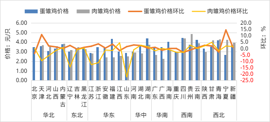 各省(区、市)雏鸡价格及环比增减情况图