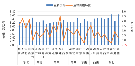 各省(区、市)豆粕价格及环比增减情况图