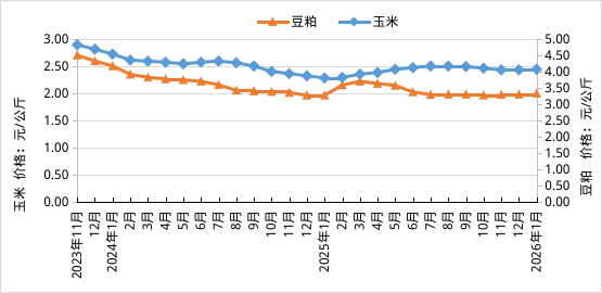 全国玉米和豆粕价格曲线图